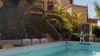 חצר עם בריכה מרעננת ומטבח חיצוני