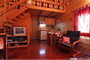 הבקתה הגדולה הנה יחידת נופש מרווחת ומפנקת לזוגות, בהחלט עיצוב כפרי, ריהוט עץ ואבזור מלא לחופשה בלתי נשכחת.