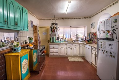 המטבח המשותף המאובזר עד הפרטים הקטנים: מקרר משפחתי, תנור אפייה, מדיח כלים, מיקרוגל, כלי הגשה ואוכל ובר מים.