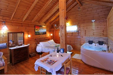 לרשותכם מיטב הריהוט והאבזור להשלמת החוויה: מיטה זוגית גדולה ורכה לשינה ערבה, ג'קוזי זרמים אינטימי ומפנק, מסך טלוויזיה lcd בלווין, חדר רחצה מטופח עם תמרוקים ריחנים ומגבות, פינת ישיבה סלונית, שידות מעוצבות, שולחן אוכל זוגי וכן מטבחון מאובזר עם מקרר, מיקרוגל, קומקום חשמלי, כלי מטבח, פינת קפה עשירה שוקולדים ובקבוק יין איכותי