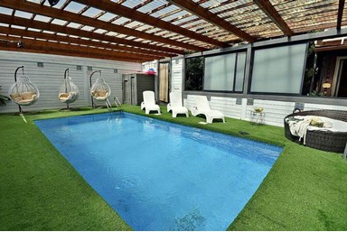 לאחר זמן איכות בבקתה או בסוויטה - זה הזמן לצאת לחצר, לספוג שמש נעימה ורוח גלילית מלטפת. בחצר בריכה צוננת המחוממת ומקורה בחורף, עמדת bbq מאובזרת, פינות ישיבה, ערסלים וקונכיות שלא תרצו לקום מהן, נדנדת עץ ופינת אוכל חיצונית.