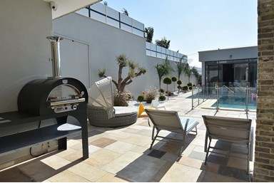 - מטבח חיצוני עם עמדת גריל מקצועית ומאובזרת