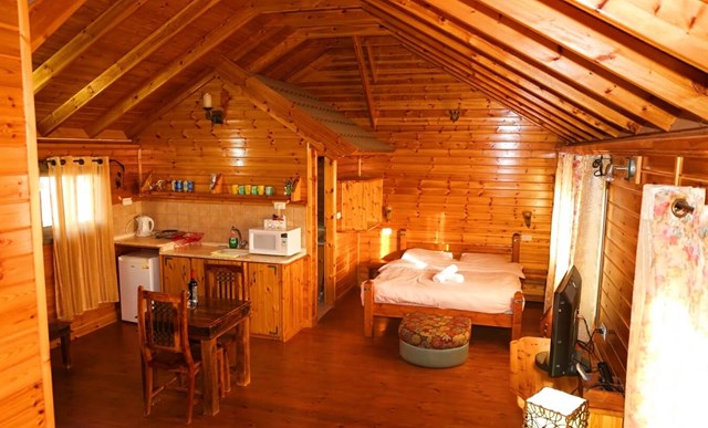 כל בקתה מעוצבת בקפידה ומאובזרת מ-א' ועד ת' על מנת להעניק לכם נוחות מירבית: מיטה זוגית גדולה ועליה מצעים מלטפים, ג'קוזי זרמים רומנטי, שולחן אוכל מעץ, מסך lcd המחובר לכבלים, סלון יפהייפה בעיצוב כפרי, מטבחון מאובזר להכנת ארוחות קלות במהלך החופשה (פינת שתייה חמה, מקרר, מיקרוגל, כיריים, קומקום חשמלי וכלי הגשה) וכן חדר רחצה מרענן ובו תמרוקים ריחניים ומגבות.