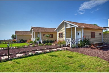 בקתות העץ מוקפות חצר פרטית, ירוקה ופורחת, המשקיפה לנוף עוצר נשימה עם מדשאות, בריכה (בעונה בלבד), שולחנות פיקניק, תאורת גן צבעונית, פינות מנגל ופינות ישיבה בהם תוכלו להירגע מול הנוף וליהנות משקיעות כתומות רומנטיות.